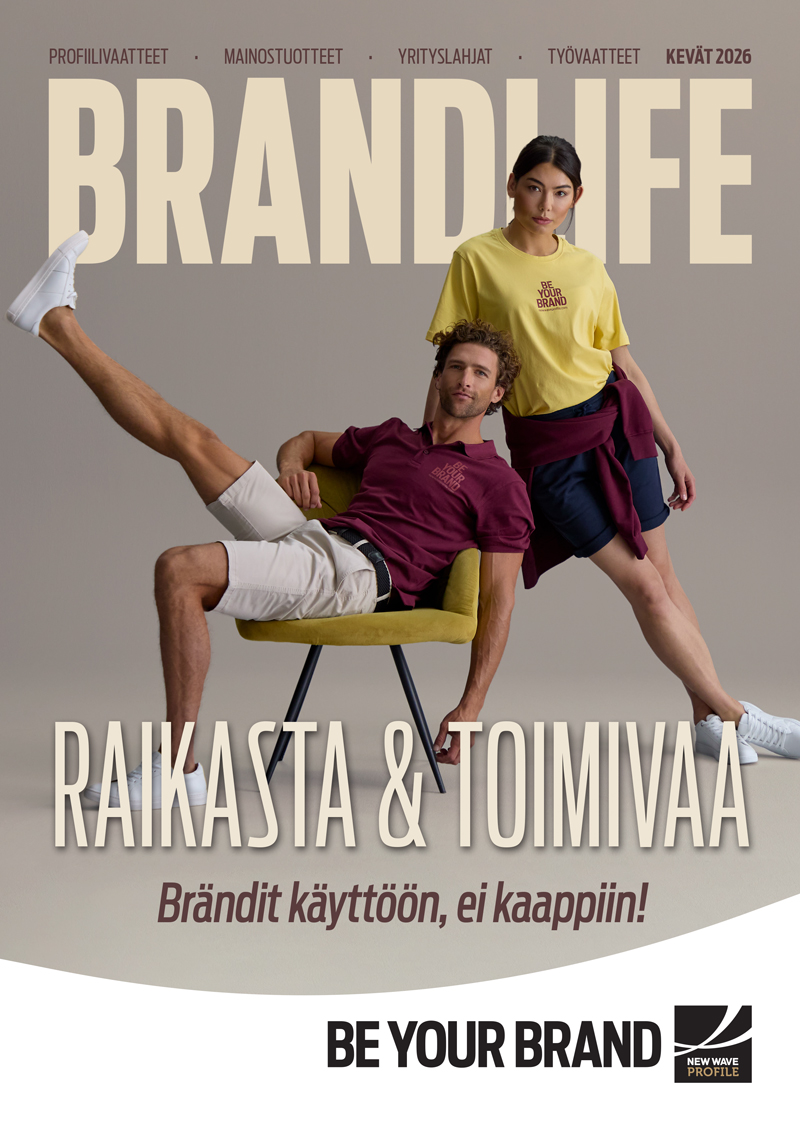 Uusi Brandlife-kuvastomme on ilmestynyt ja löydät siitä monipuolisen kattauksen tarjoamiimme brändiratkaisuihin. Etsitkö vaatteita henkilökunnalle, siistejä paitoja toimistolle tai liiketapaamisiin, lahjoja asiakkaille tai jakotavaraa messuille? Meiltä saat kaiken tämän ja paljon muuta, omalla painatuksella personoituna.