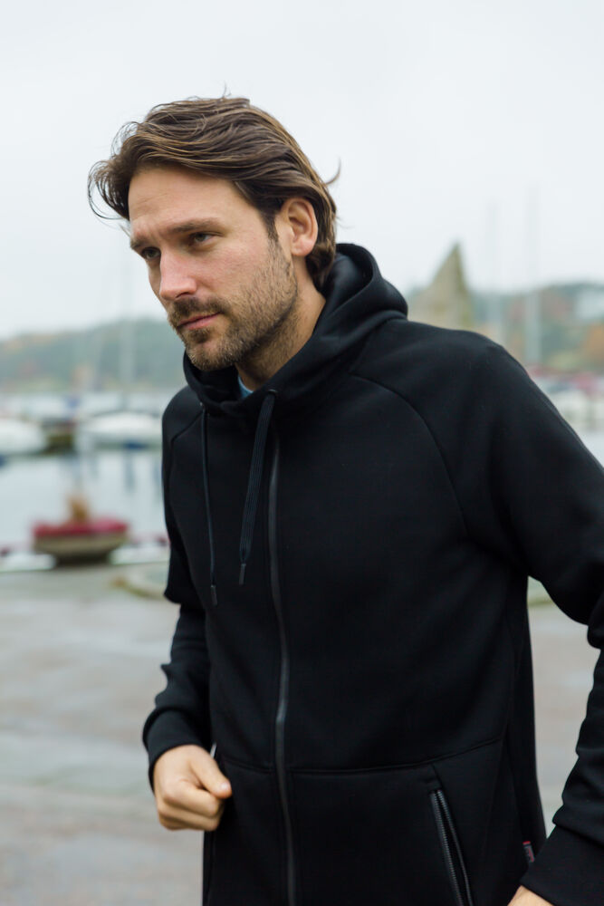 D.A.D huppari raglanhihoilla ja täyspitkällä vetoketjulla. Valmistettu kaksinkertaisesta teknisestä materiaalista, jonka ansiosta huppari on joustava, pehmeä ja miellyttävä päällä. Muotoiltu huppu, jossa kaksinkertaiset saumat ja kiristysnyöri. Resorit hihansuissa ja helmassa. Kaksi vetoketjullista etutaskua ja pidennetty selkäosa.