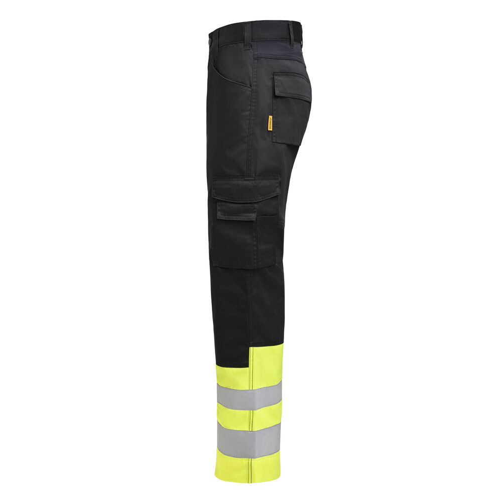 Helppohoitoiset polyesteri / puuvillasekoitteesta valmistetut huomiotyöhousut soveltuvat erinomaisesti palvelualan työtehtäviin. Stretch-paneelit takana lisäävät liikkumisvapautta. Tilavat etutaskut ja takataskut läpällä. Reisitaskussa lisäosasto ja tarrakiinnitteinen läppä. Lahkeita voidaan pidentää 5 cm käänteellä. Sertifioitu luokkaan 1 standardin EN ISO 20471 mukaisesti. Saatavilla myös naisten mallina (tuotekoodi 2416).